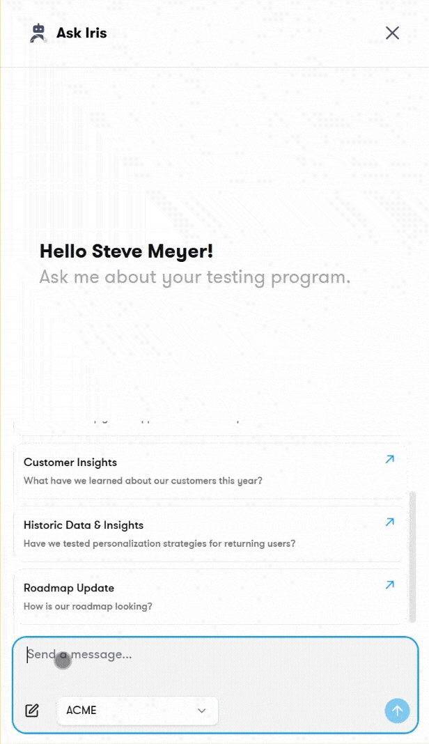 Our Growth Strategists use a separate, internal version of Ask Iris that draws from our database of thousands of experiments and personalization campaigns run across industries and business models. Your data always stays completely private and isolated but this broader intelligence gives our team a strategic advantage.