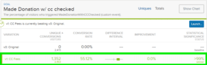 - A test that gave donors the option to cover credit card processing fees